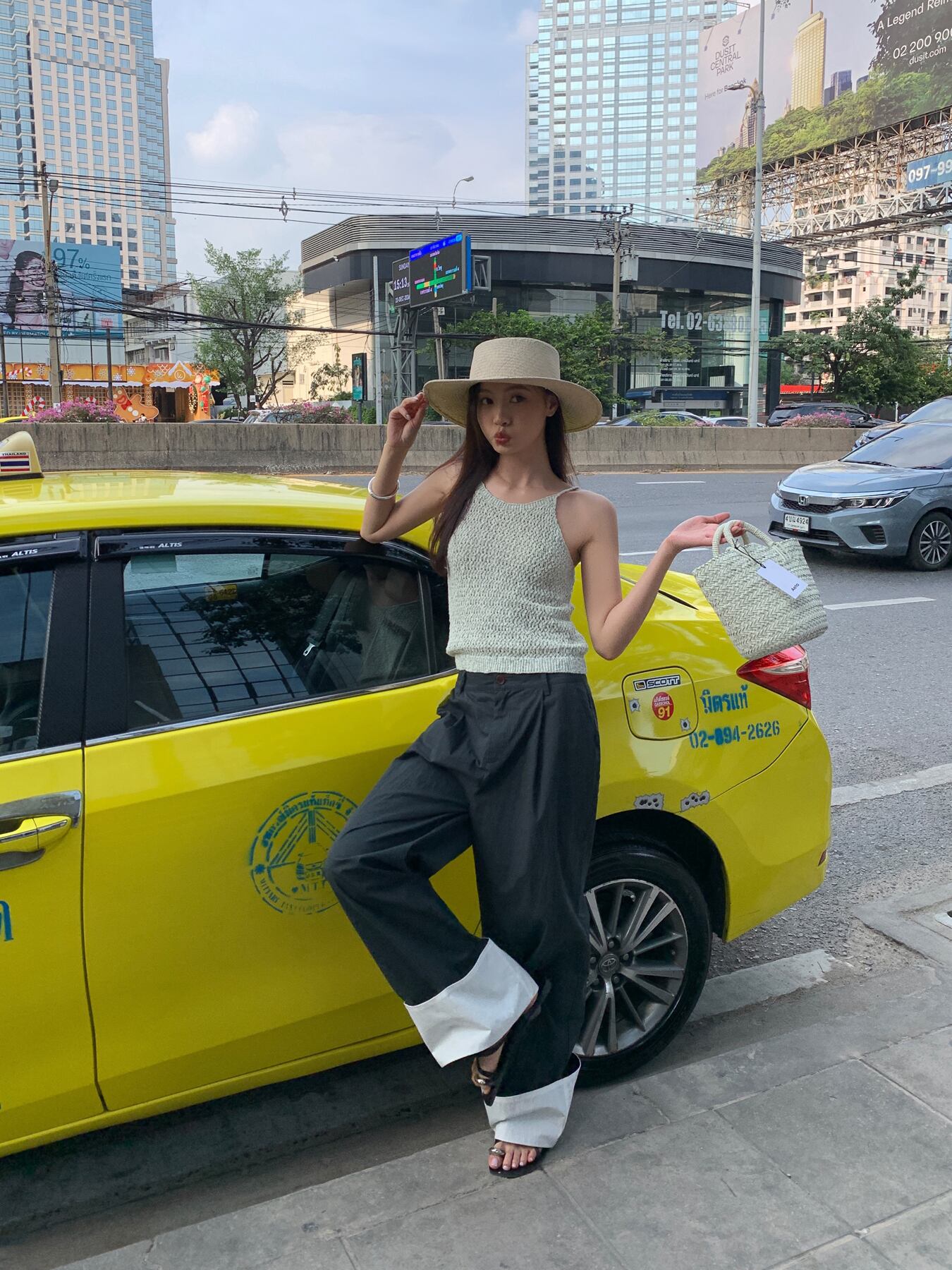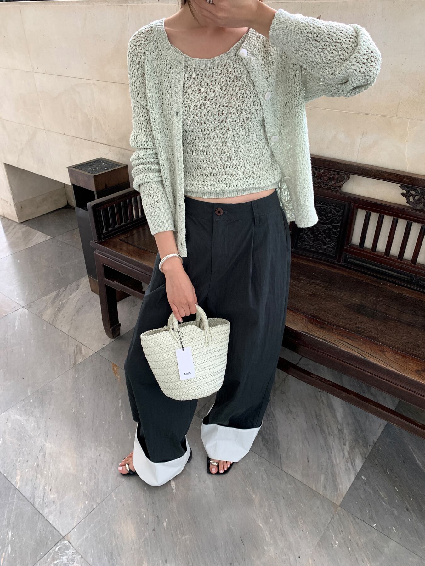 ロールアップコットンワイドパンツ