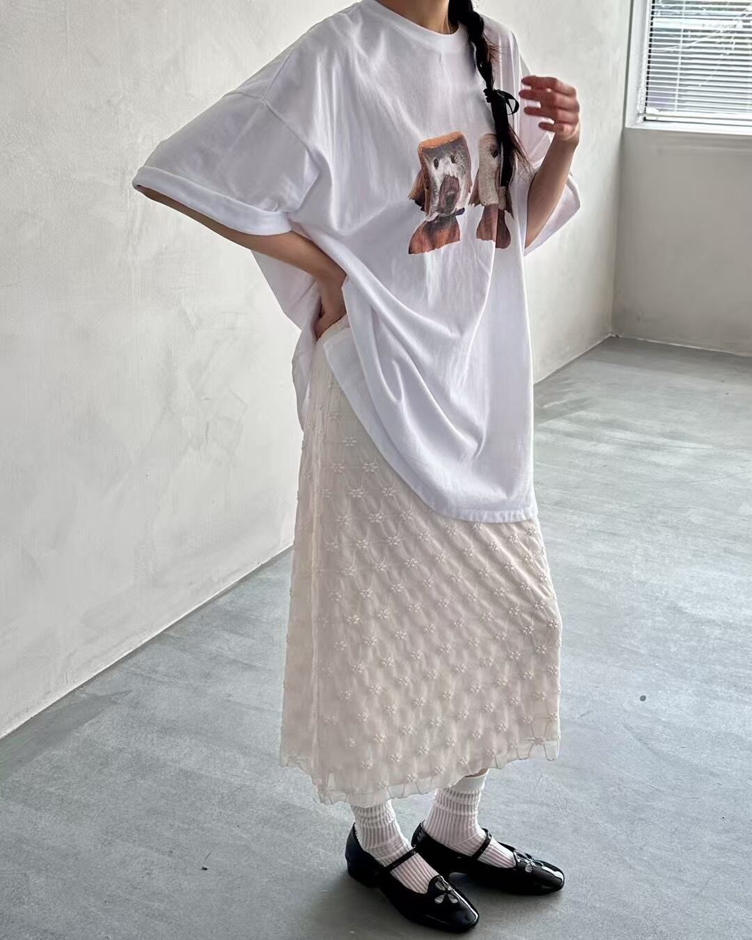着画のようにゆったりめTシャツと合わせると