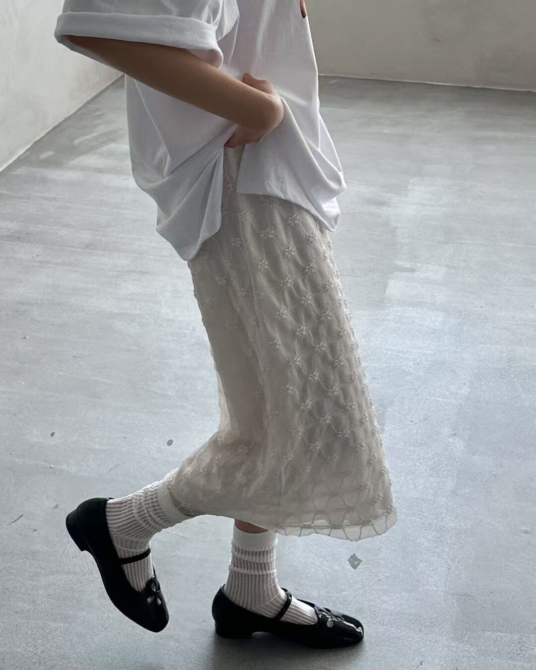チュールレースストレッチスカート