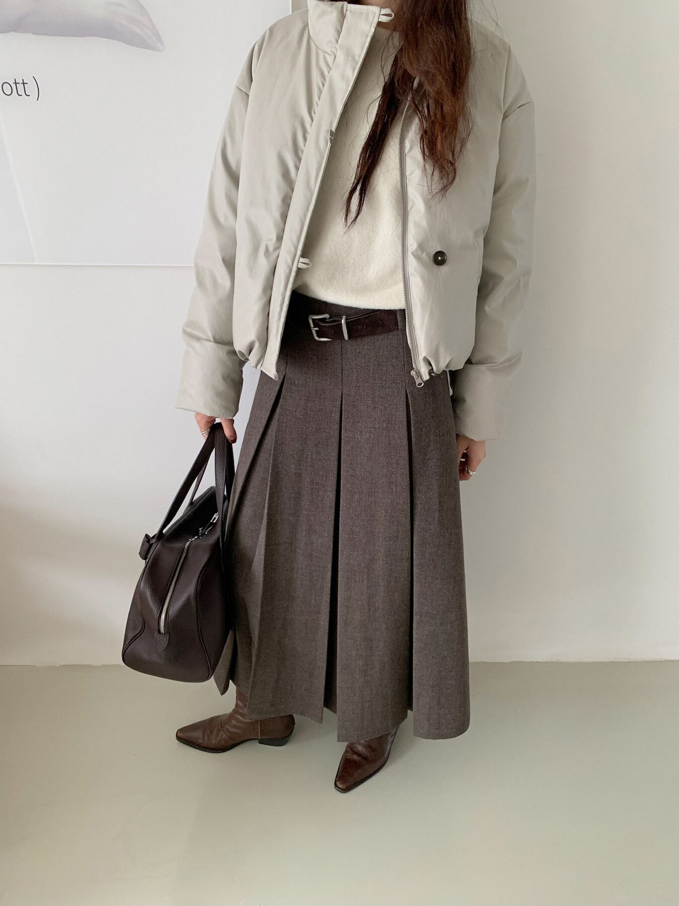 太幅のロングプリーツがスタイリッシュ