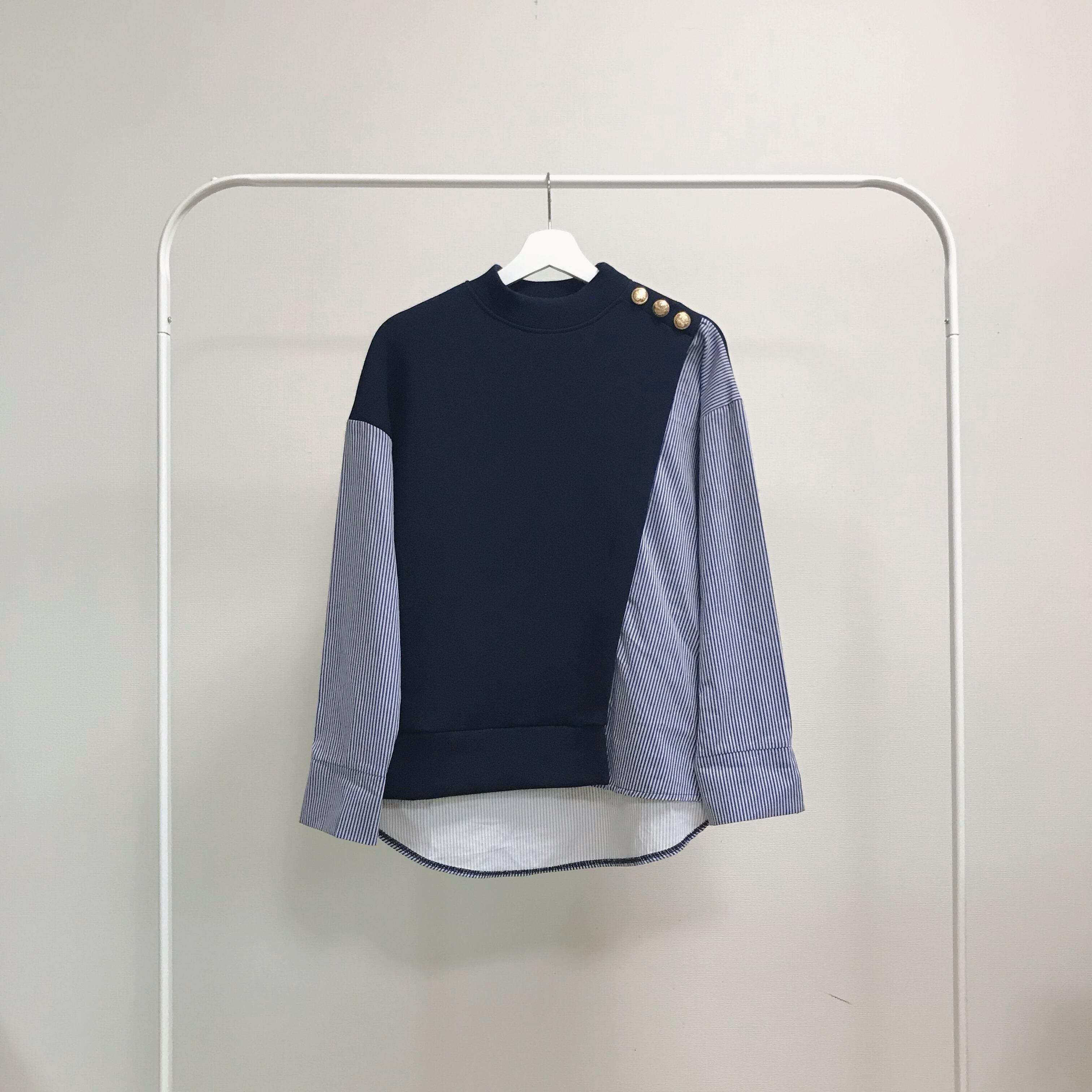 ストライプシャツ袖ドッキングトップス【予約商品 3/7までの期間限定】