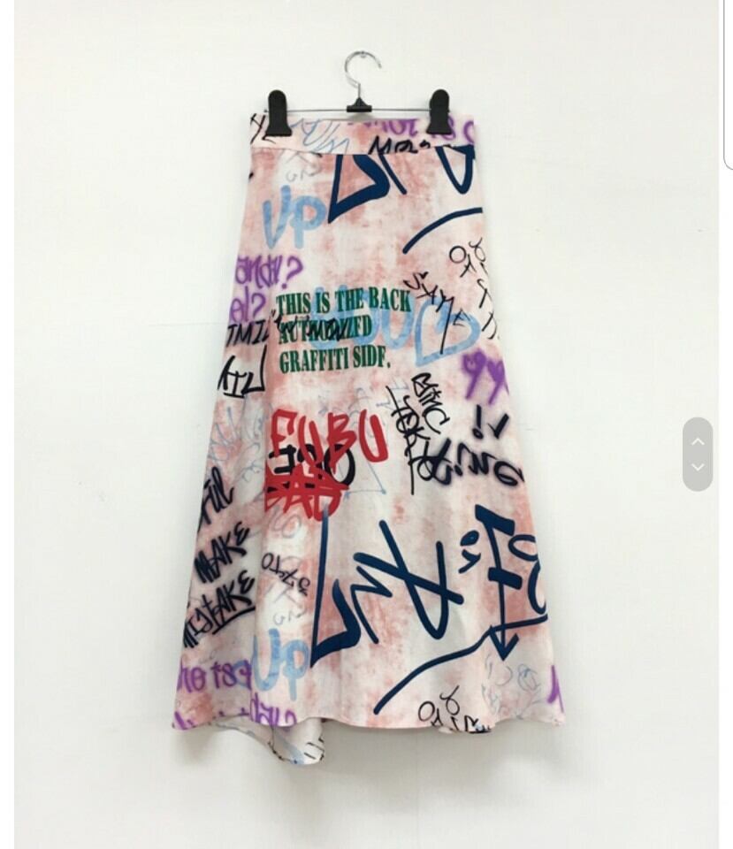 リネン混レタリング柄スカート 【予約商品 8/11 22時までの期間限定】