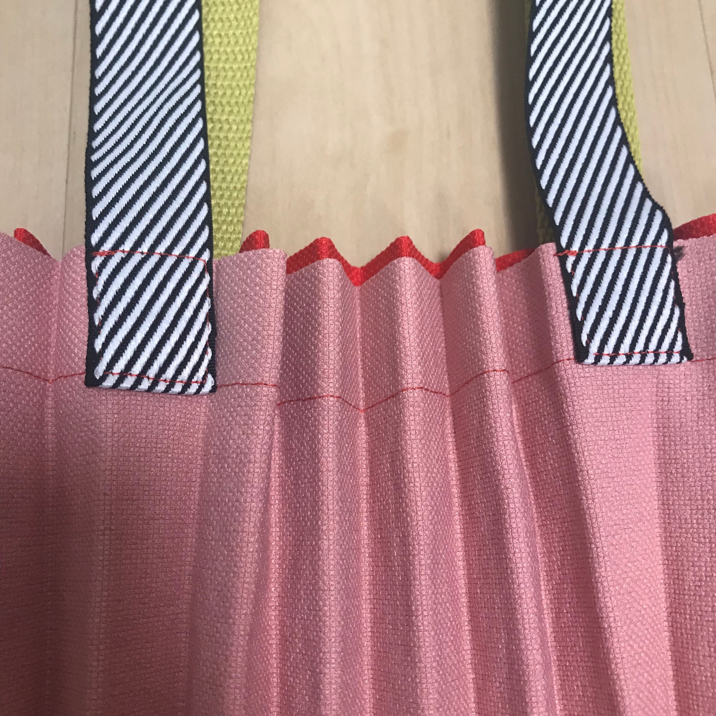 おしゃれなプリント柄&バイカラーのプリーツバッグです。