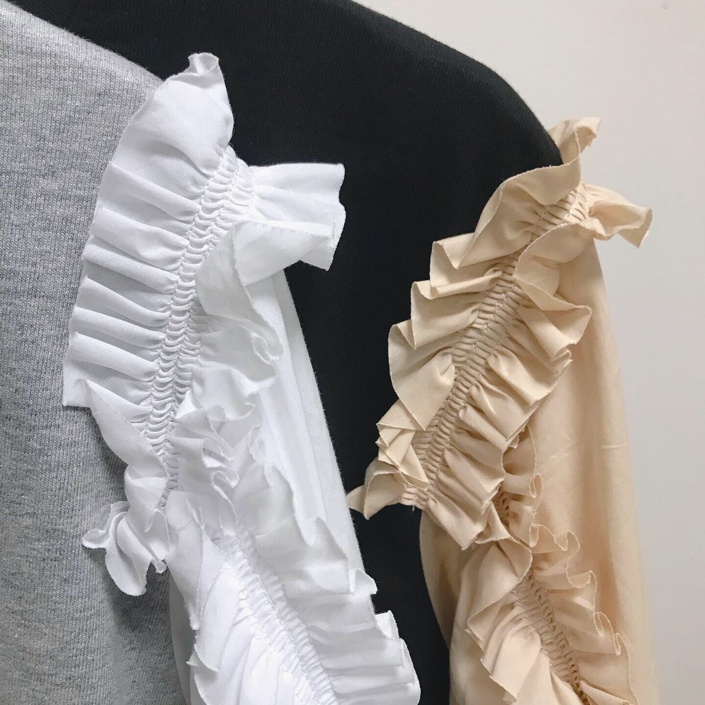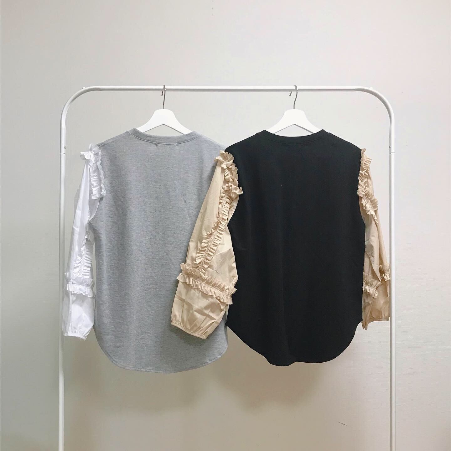 袖フリル異素材カットソー 【予約商品 9/22午後10時までの期間限定】