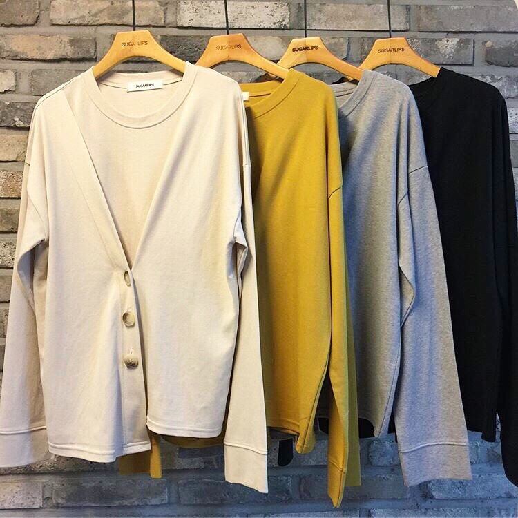ボタンデザインカーディガン風スエット 【予約商品 9/22午後10時までの期間限定】