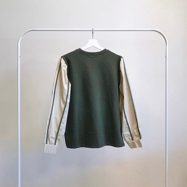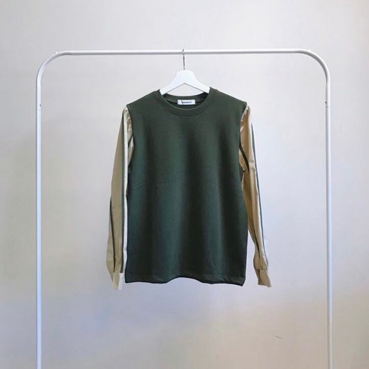 パイピングスリーブ異素材トップス