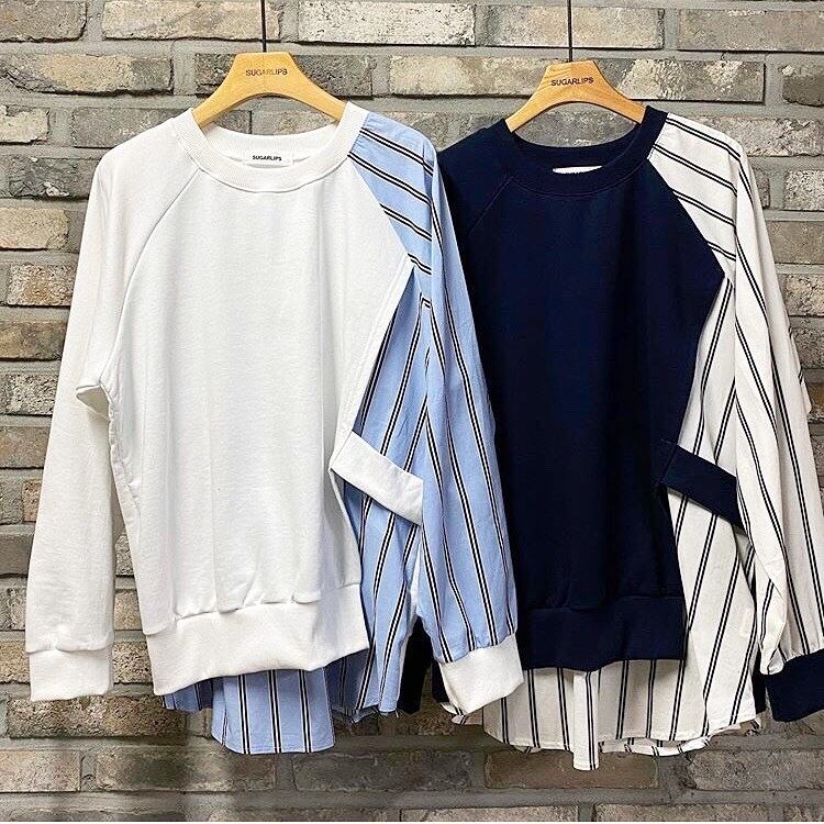 ストライプシャツドッキングスエット【予約商品 3/18午後10時までの期間限定】