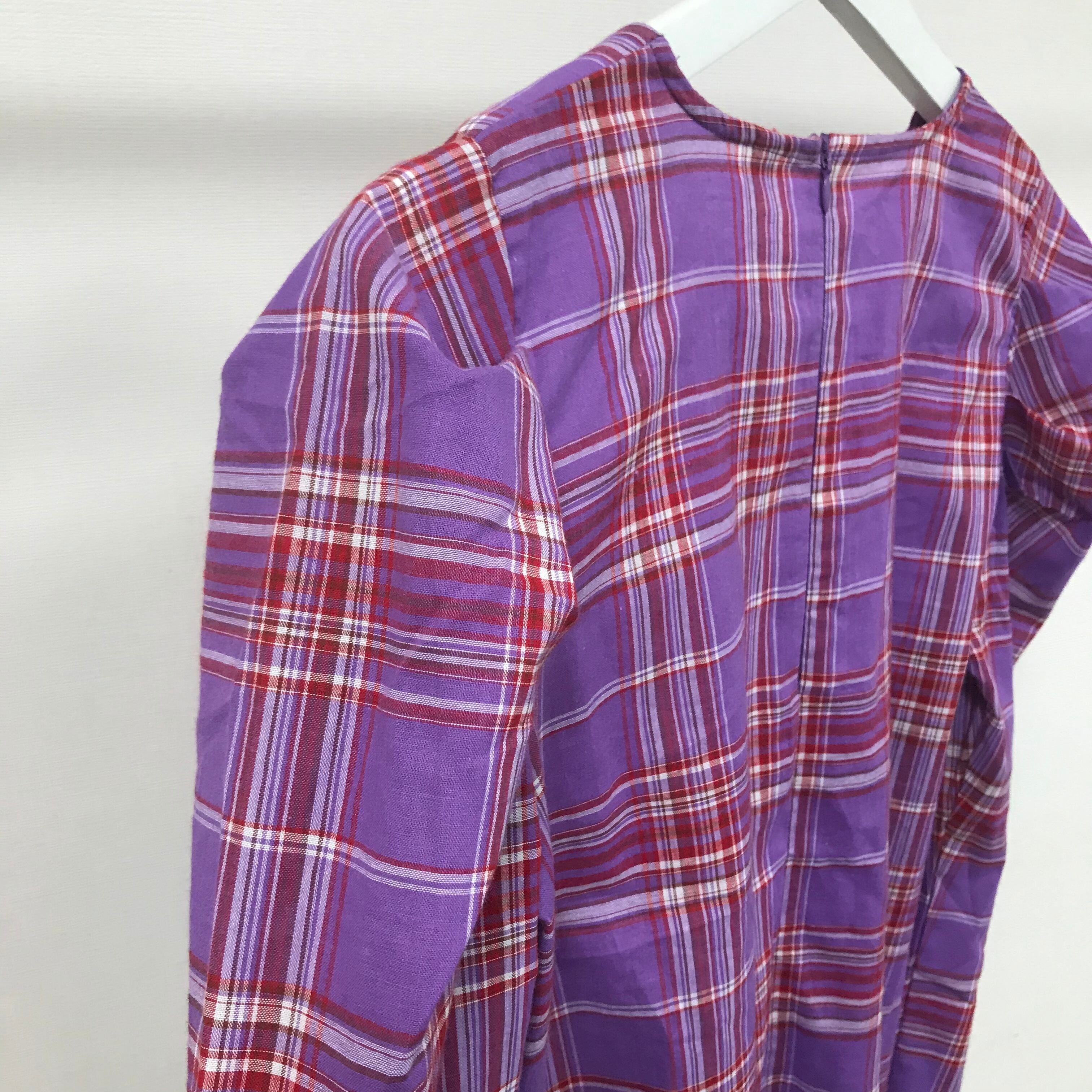 パフスリーブブラウスダンガリーブルーチェック