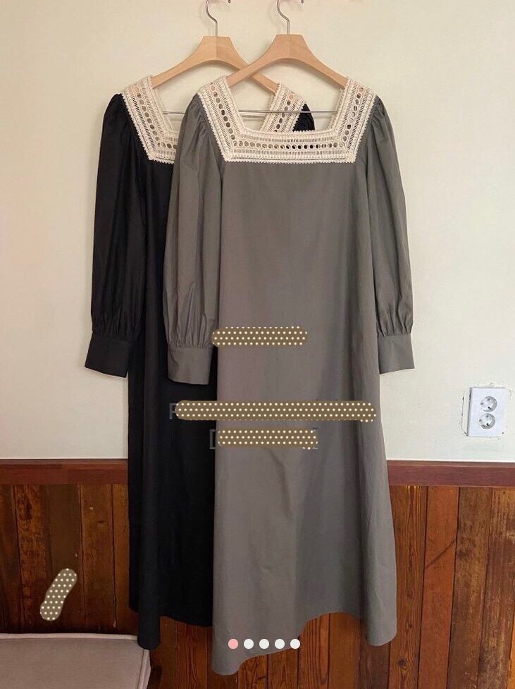 スクエアネックレースカラーワンピース