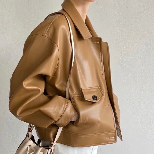 《大幅お値下げ》フェイクレザージャケットシングルボタンタイプアイボリー