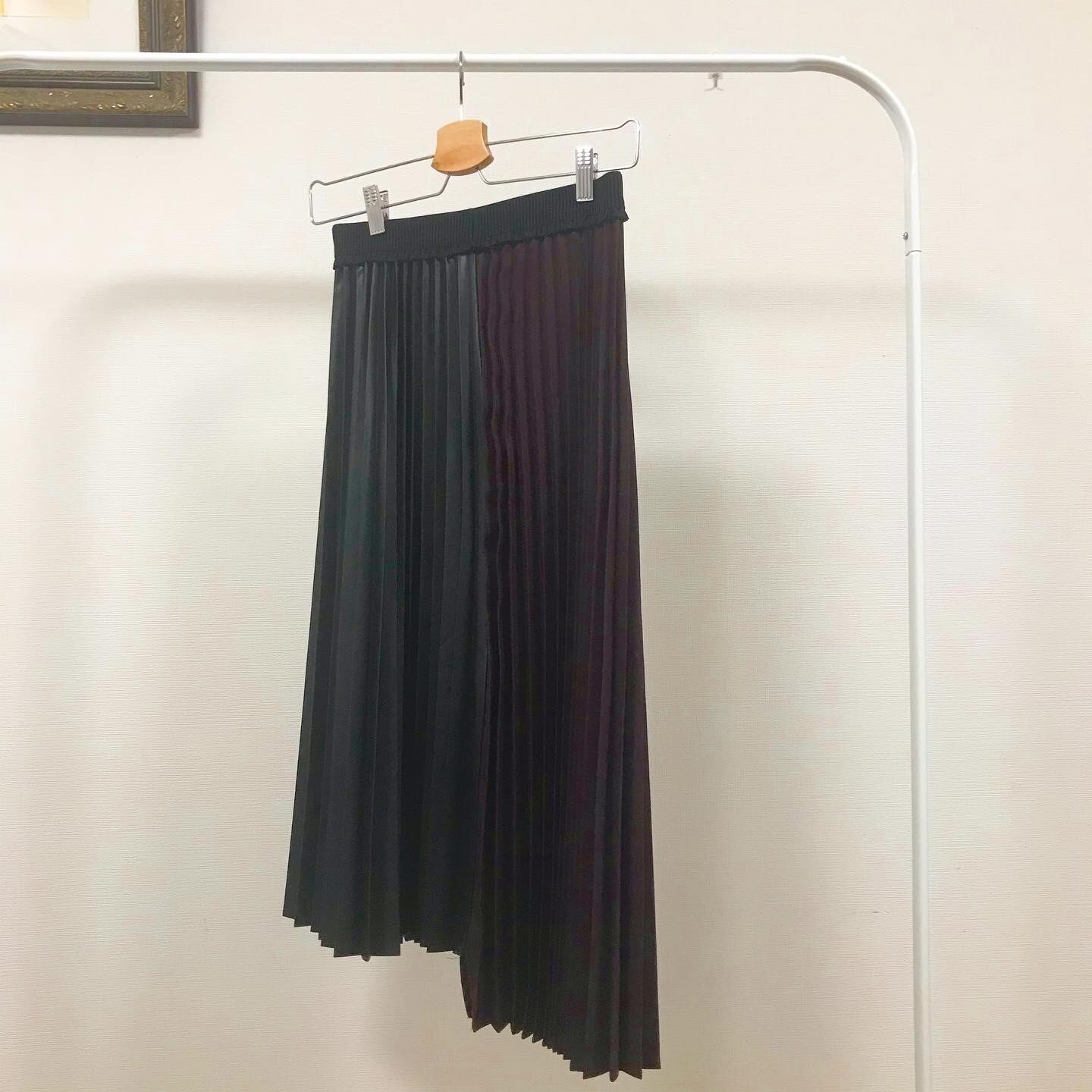 フェイクレザーバイカラープリーツスカートブラックワイン