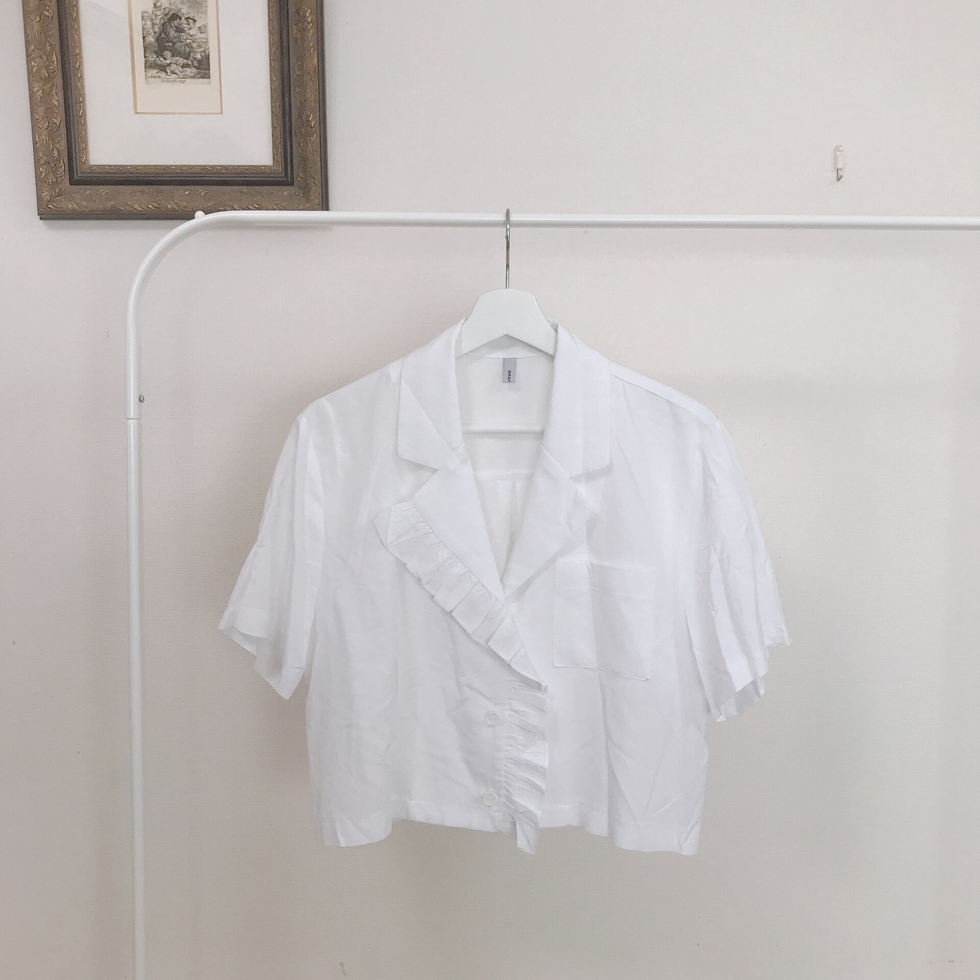 開襟カラーに片側だけフリル