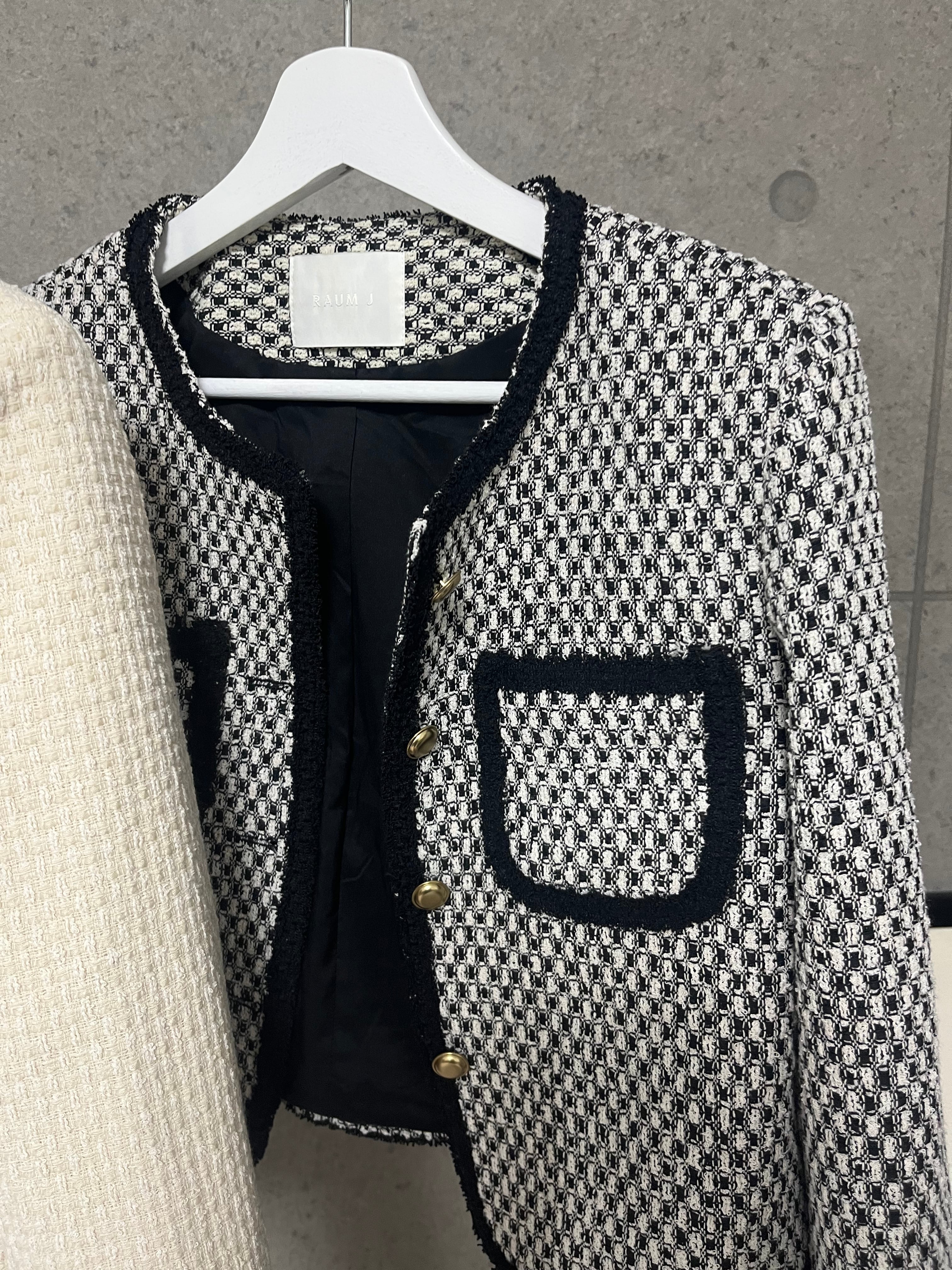 アイボリーのツイードとブラックのツイード