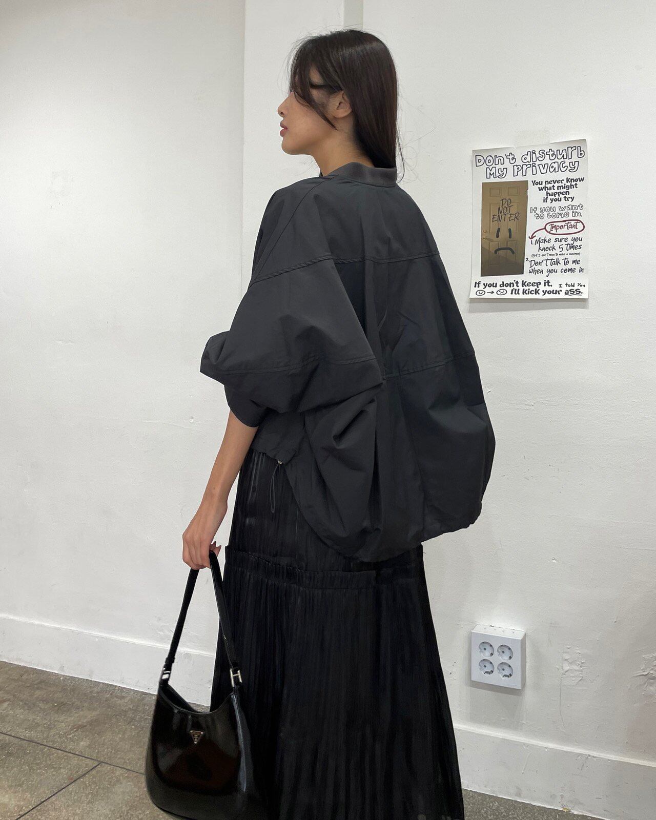 裾のシャーリングで調節可能