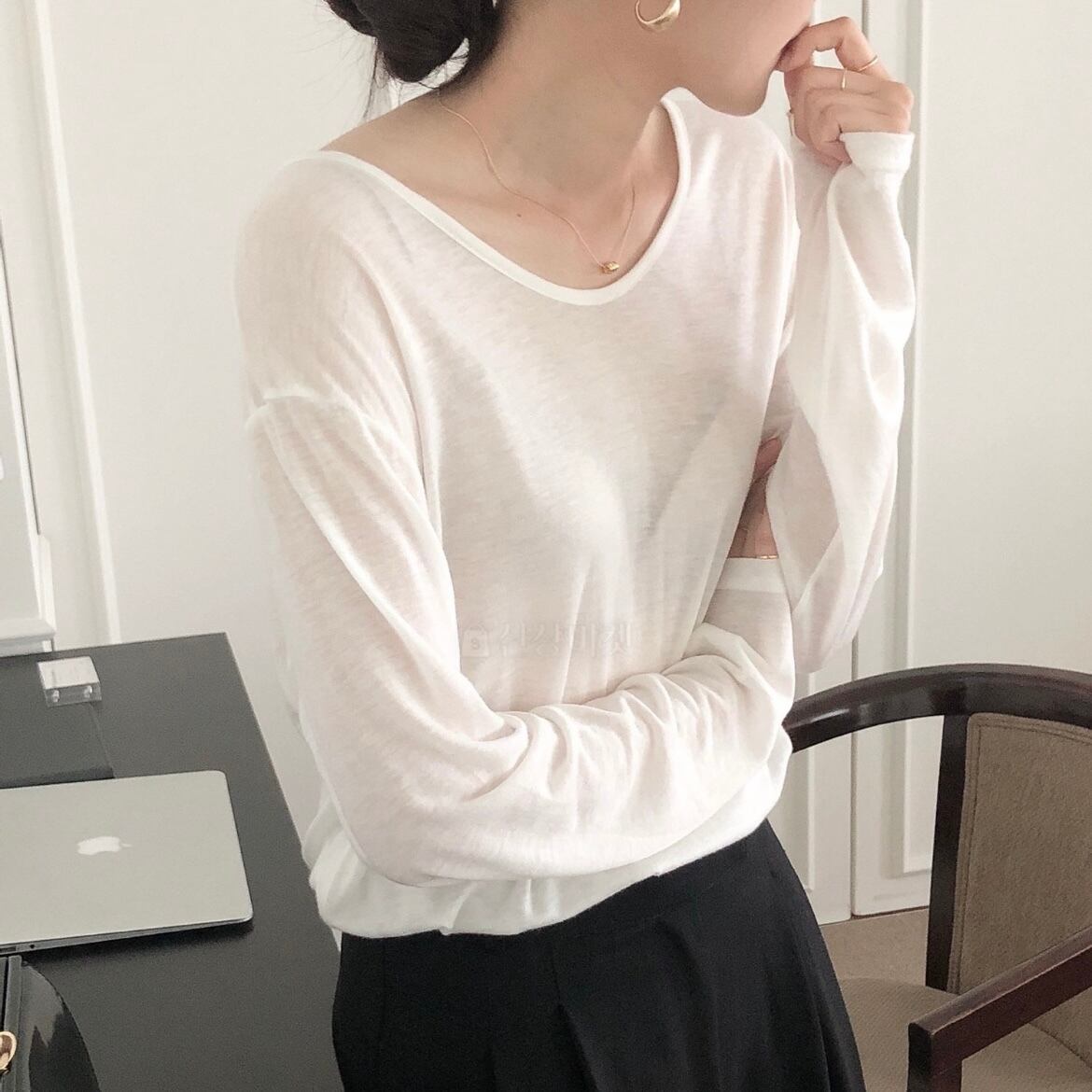 薄手の透け感のあるカットソー