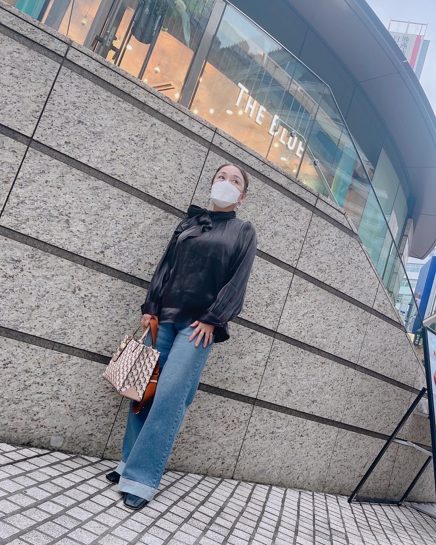 ハイネックの上からリボンを巻いて