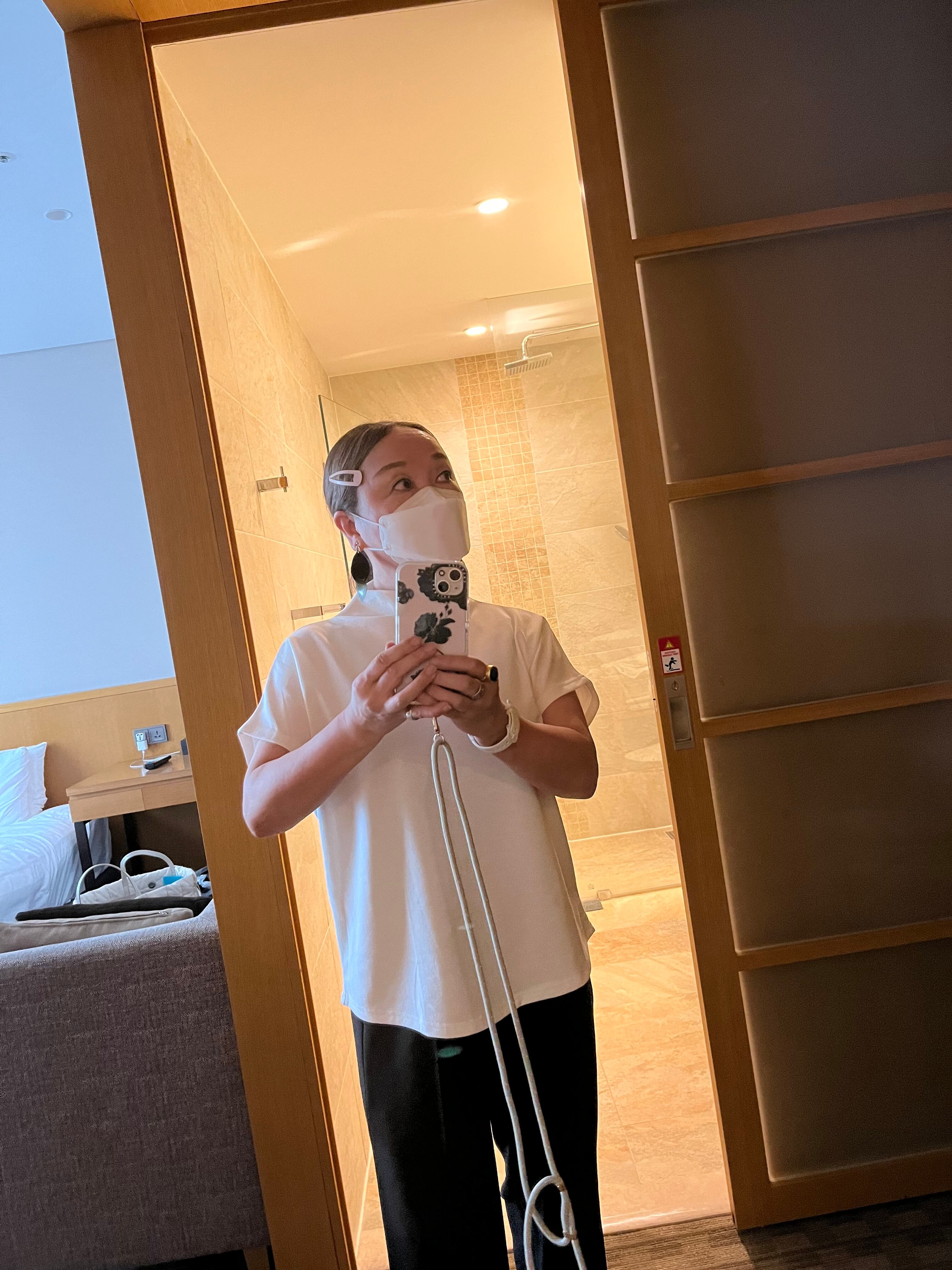 ピンタックハイネックTと似たシルエット