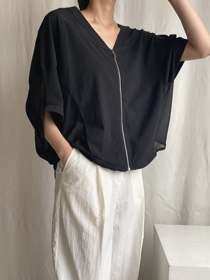 シフォンファスナーカーディガン