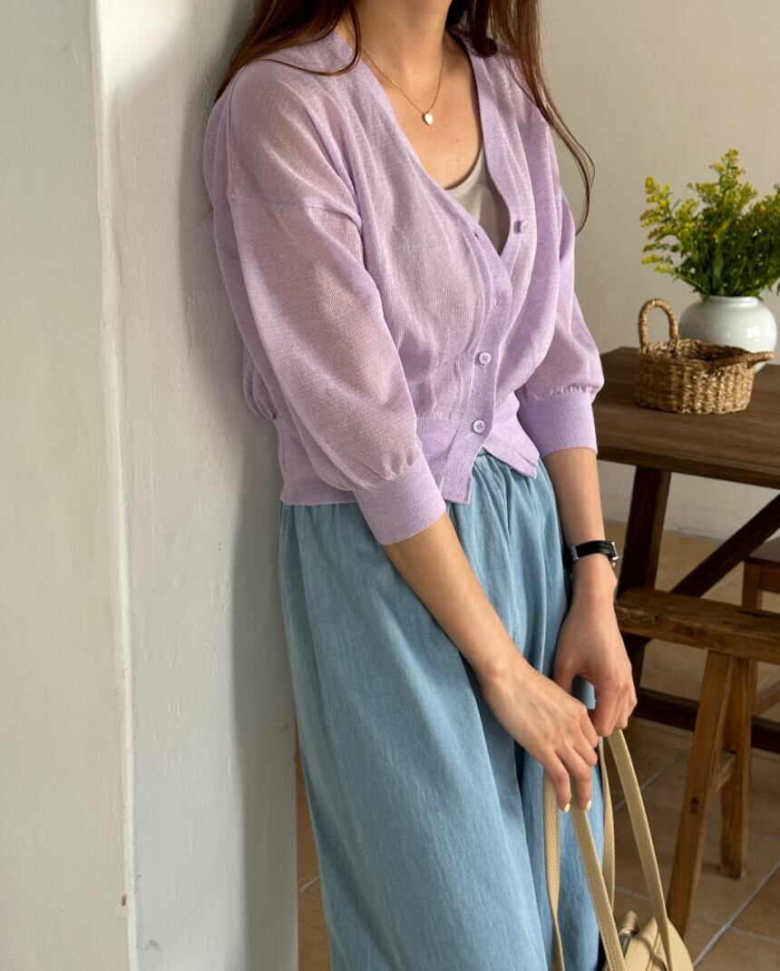 Vネック7分袖カーディガン