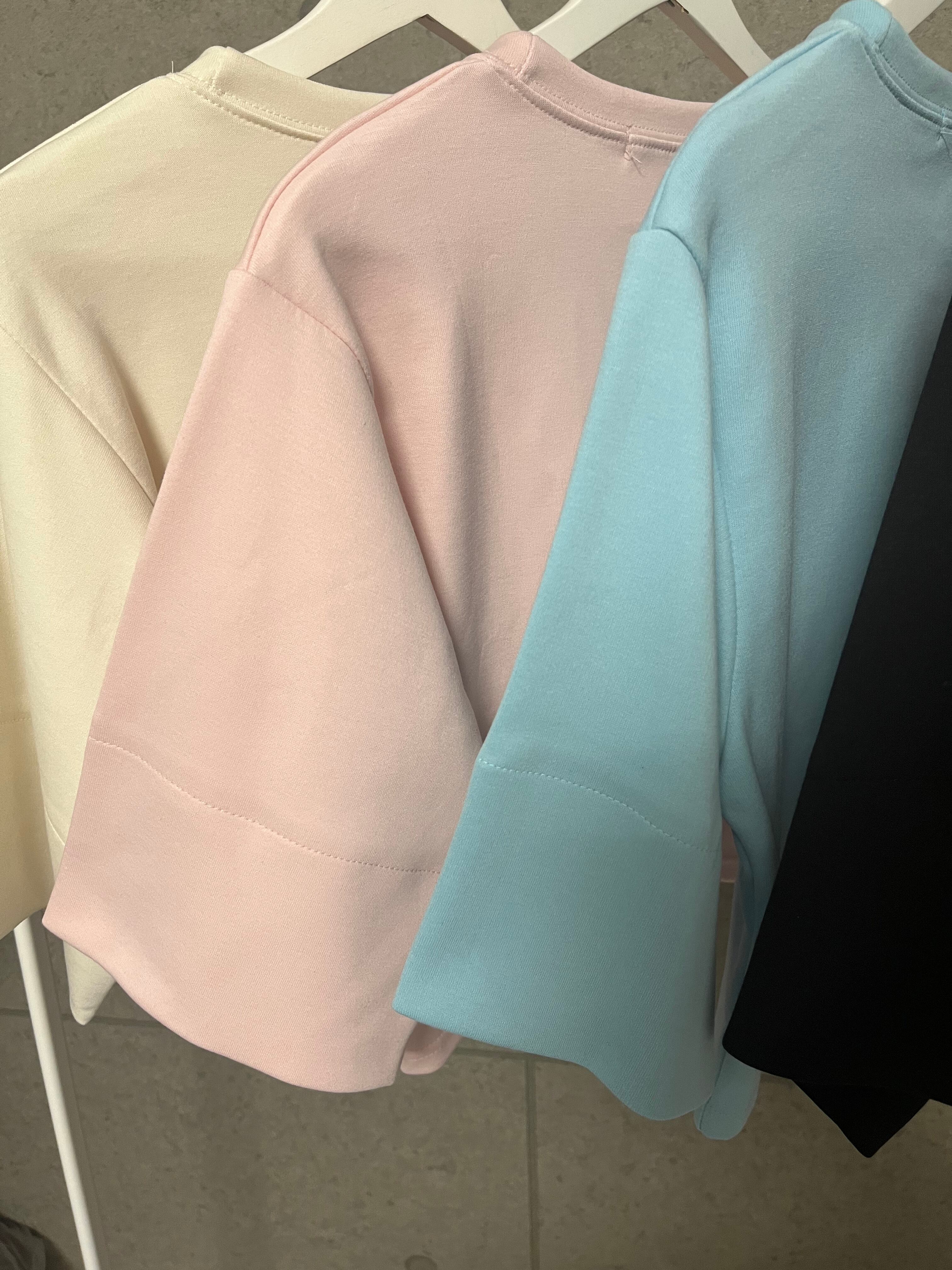 5分袖クロップドT クリームピンクソラブラック各1点