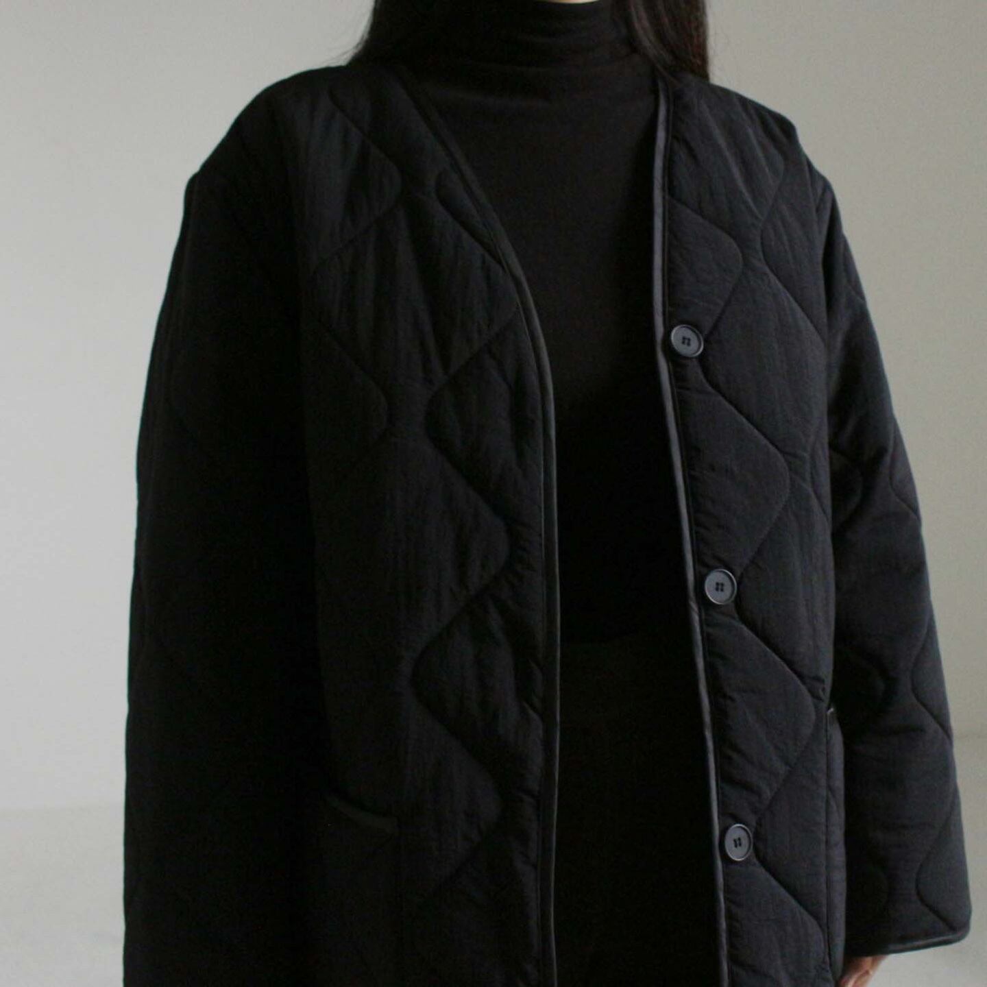 キルティングVラインロングコート
