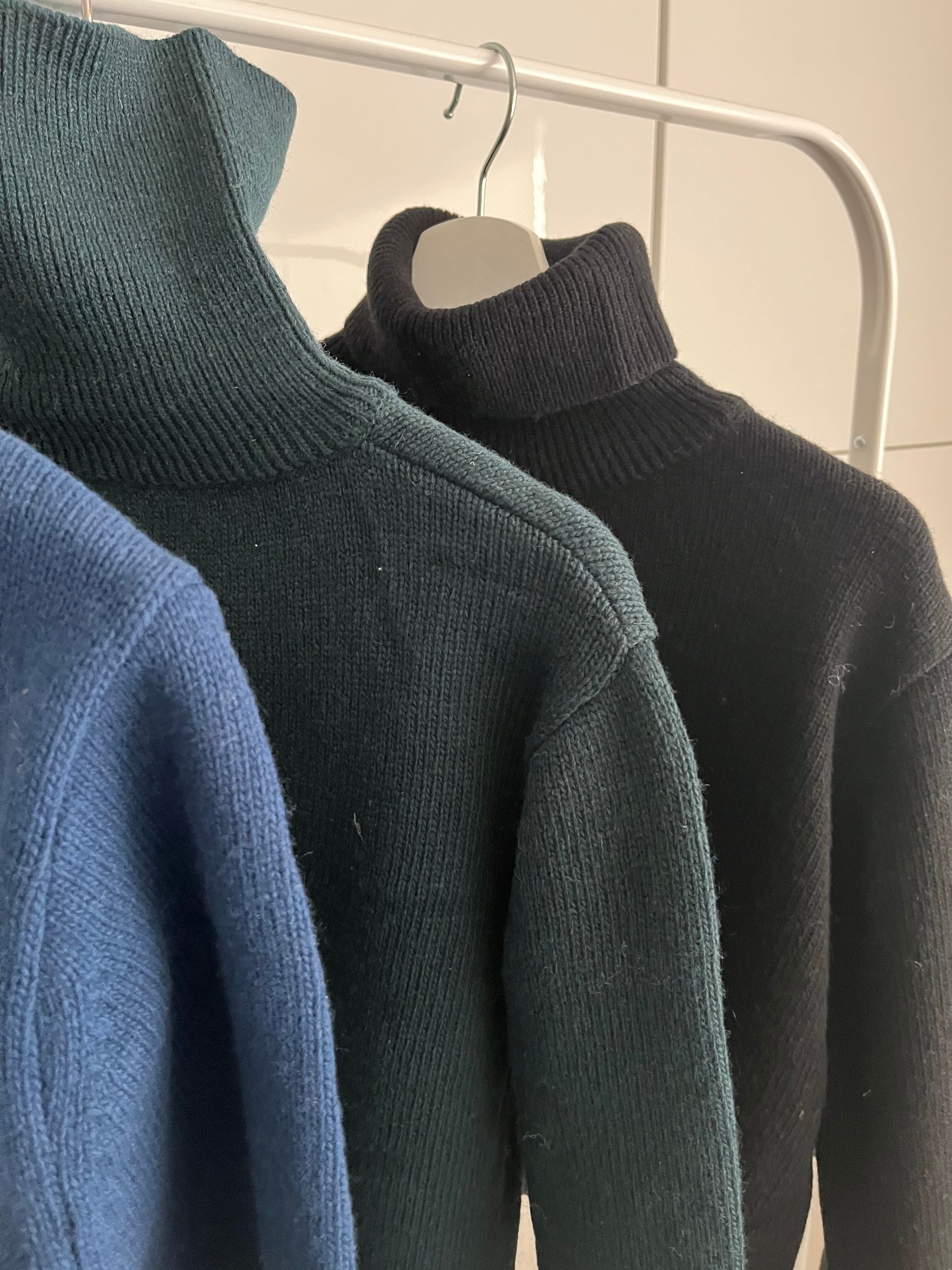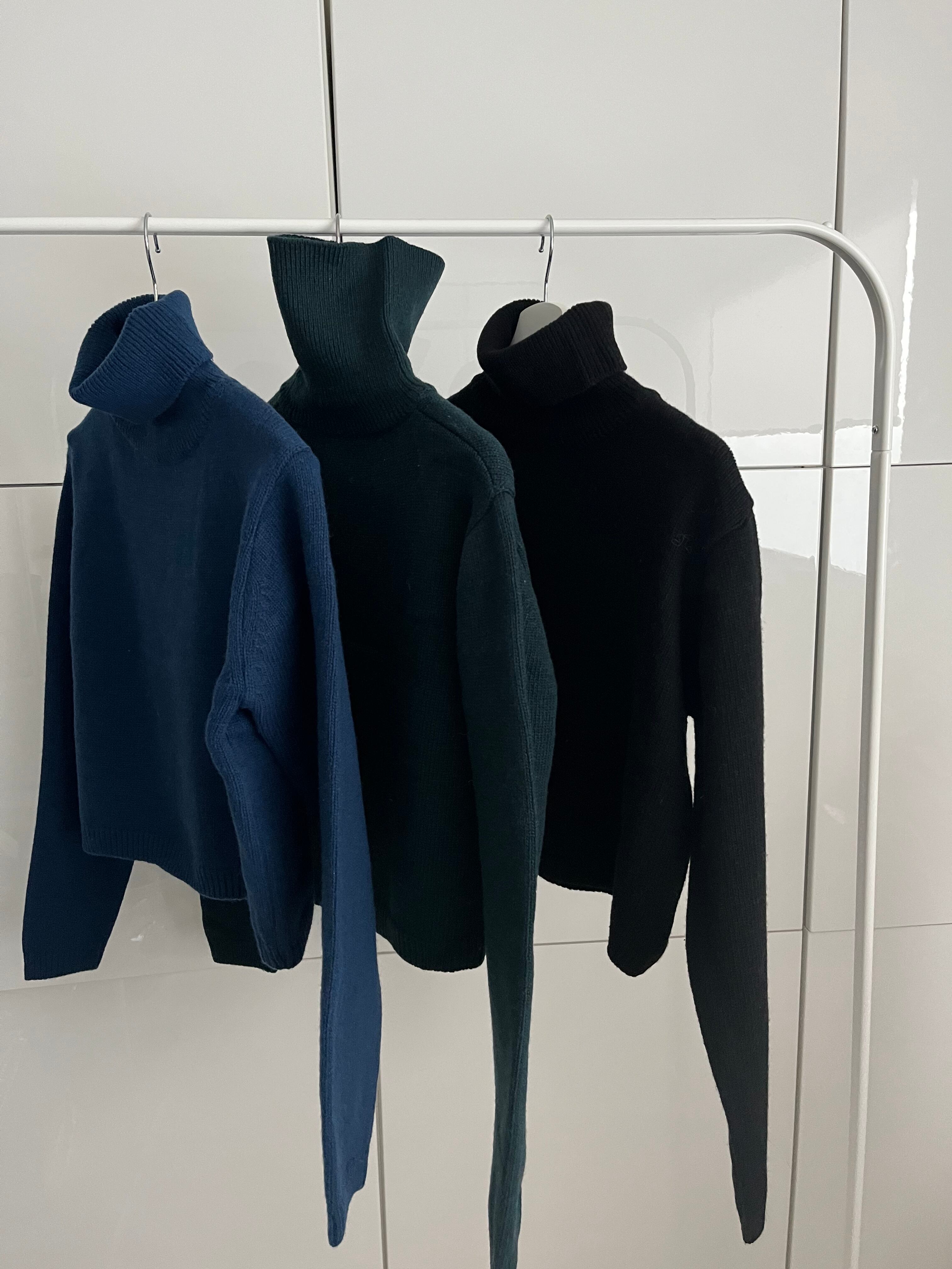 しっかりした編み地のタートルニット