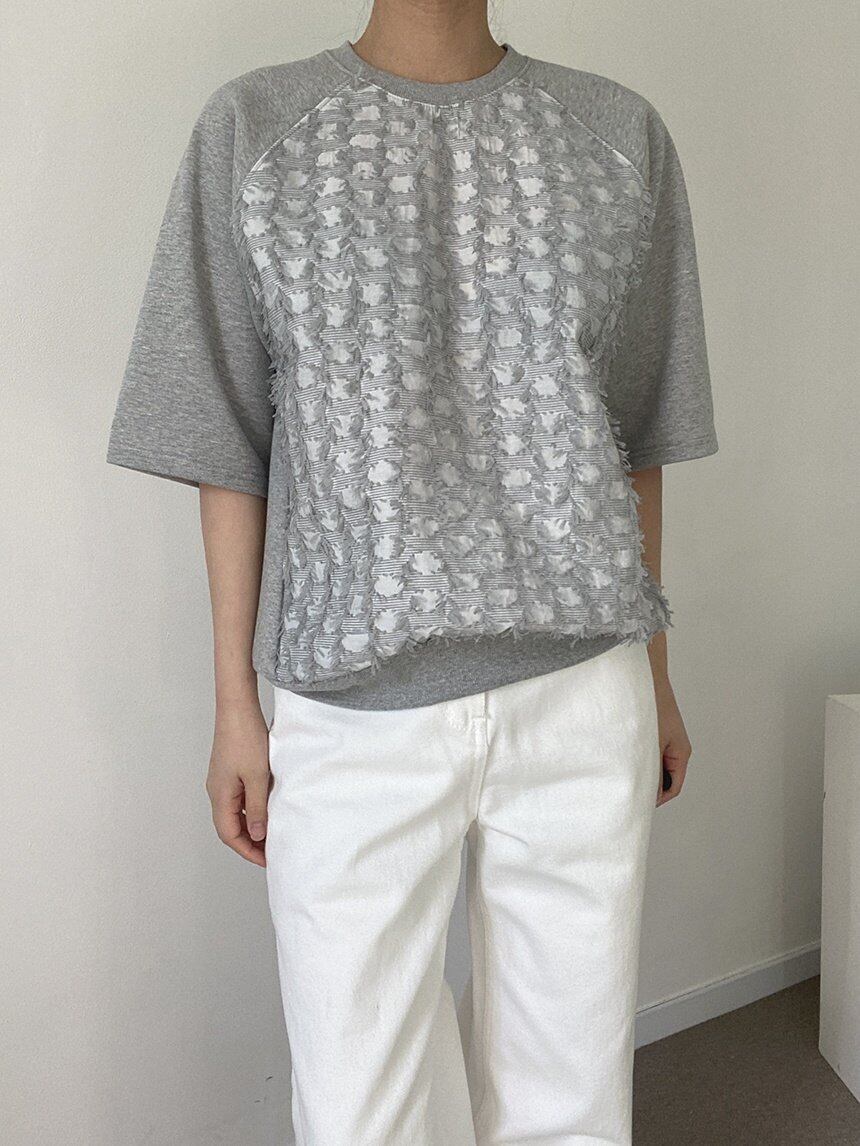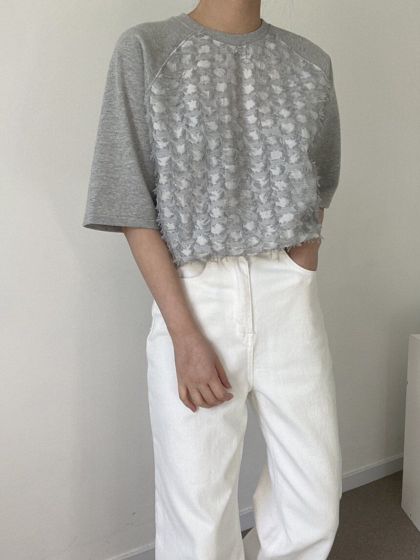 身ごろ部分にシャギーの入った生地を使用