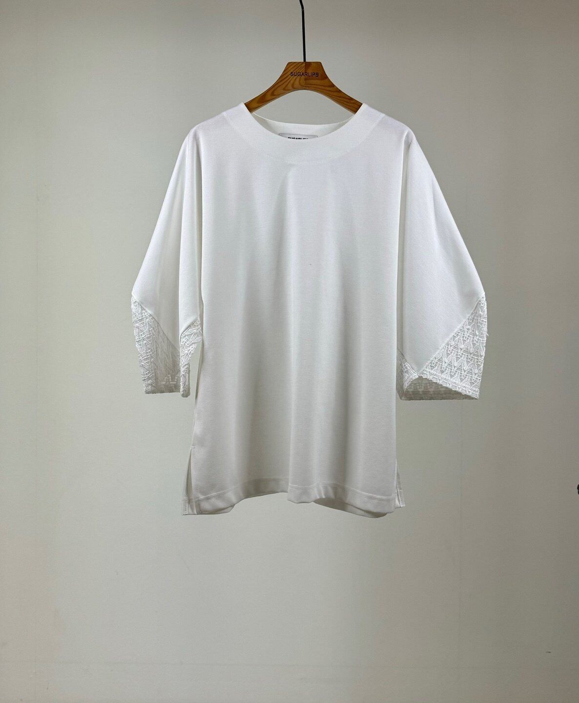 袖口に繊細なクロシェレースをあしらった