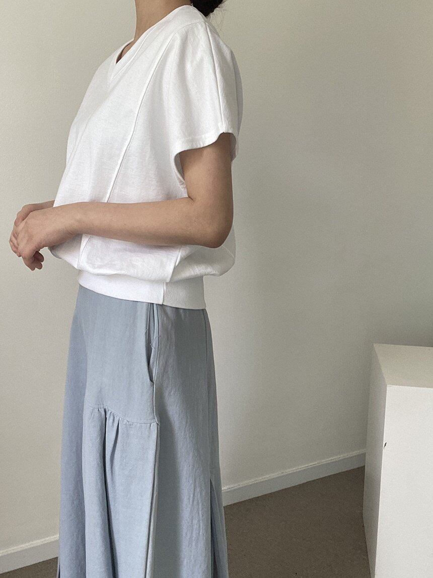 クロップ丈に浅めのVカットが