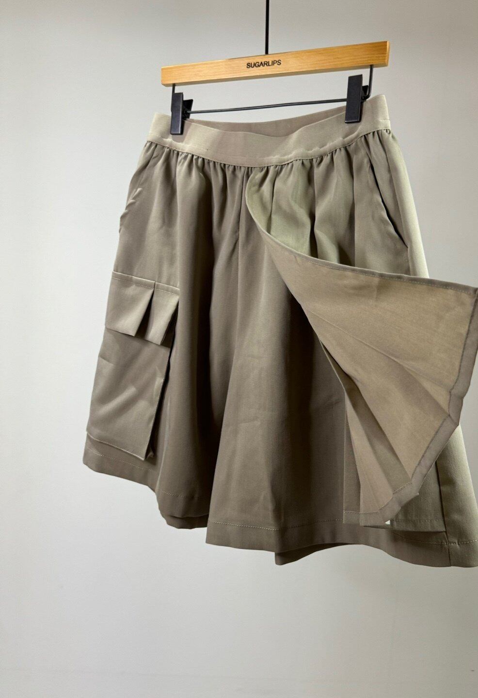 スカートをはいたようにプリーツ生地が重ねられたデザインと