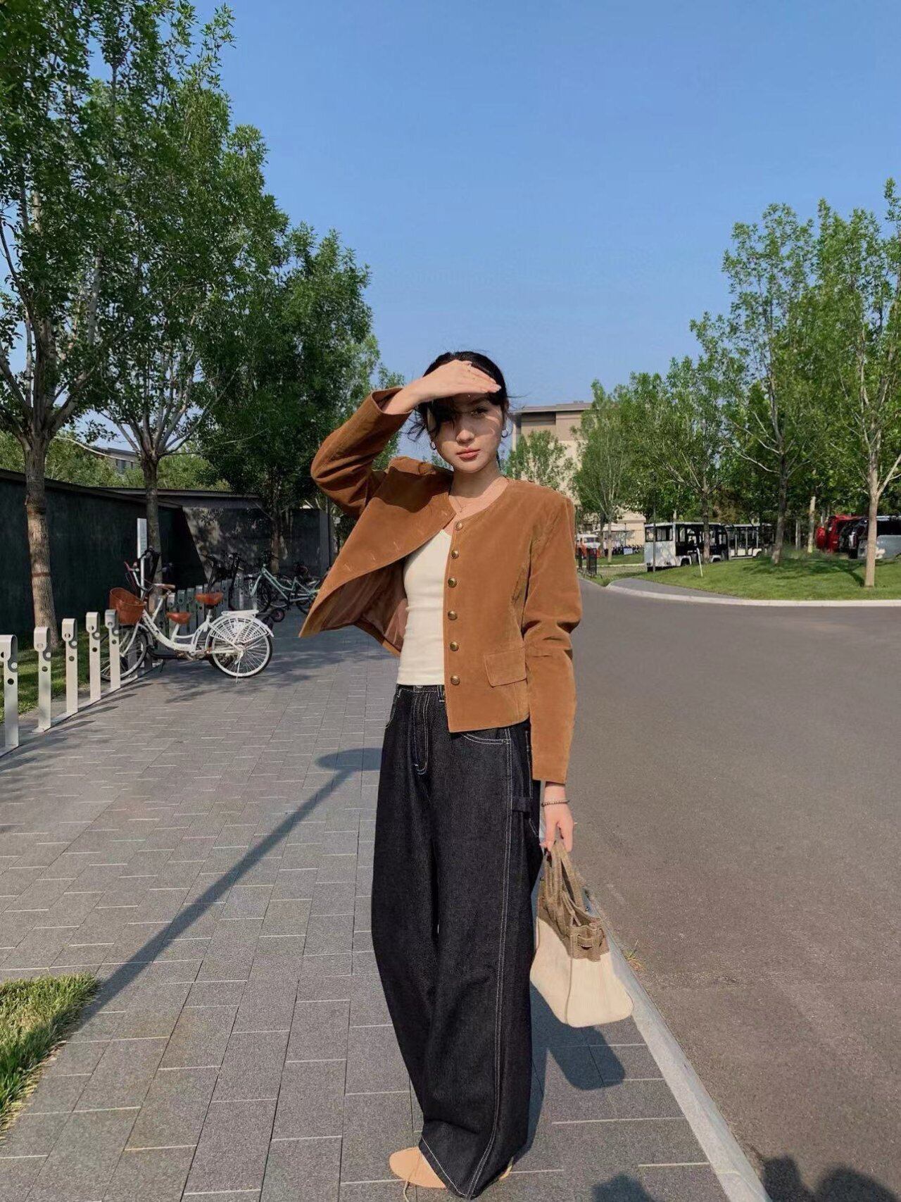 スエード調ショート丈ジャケット