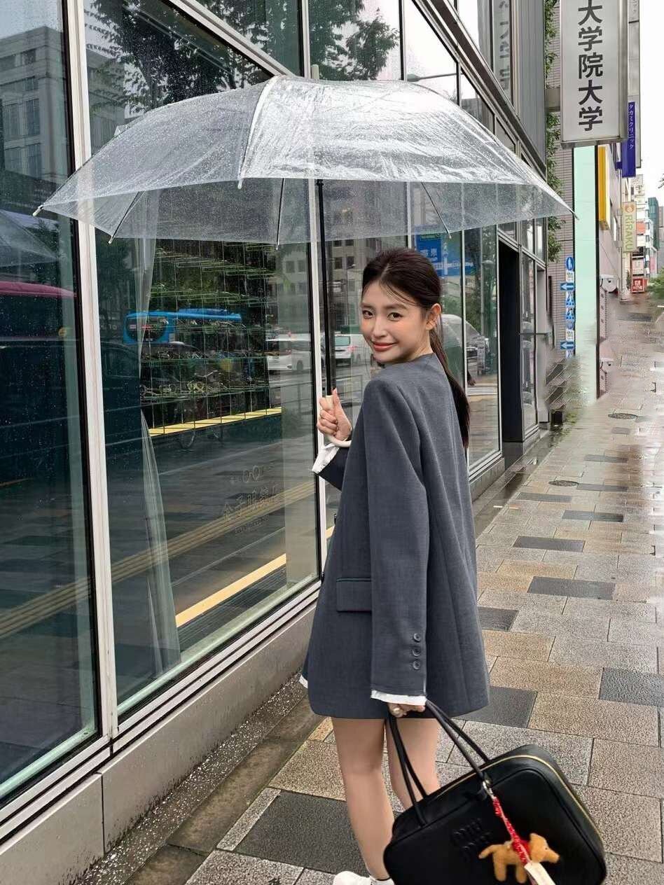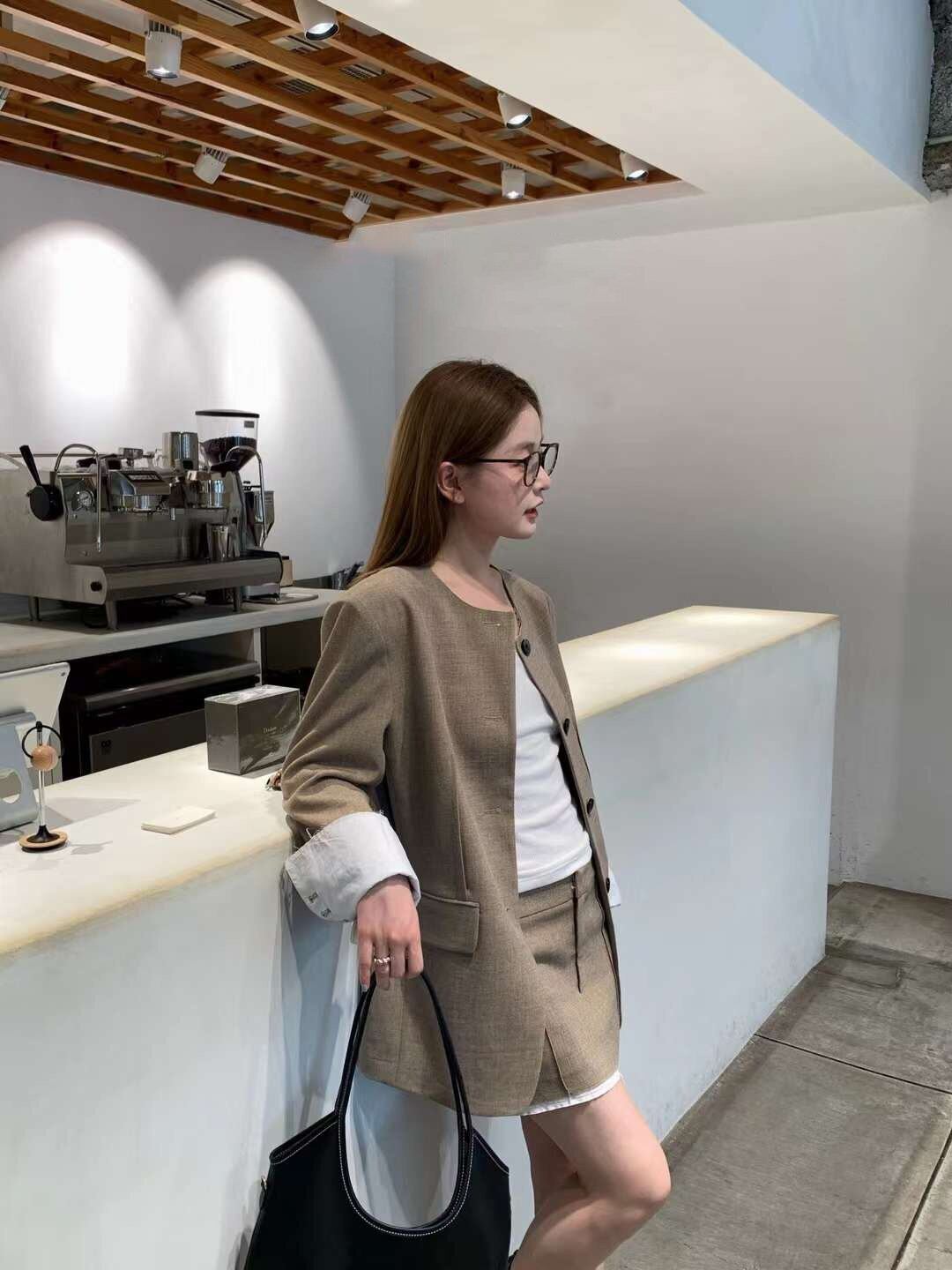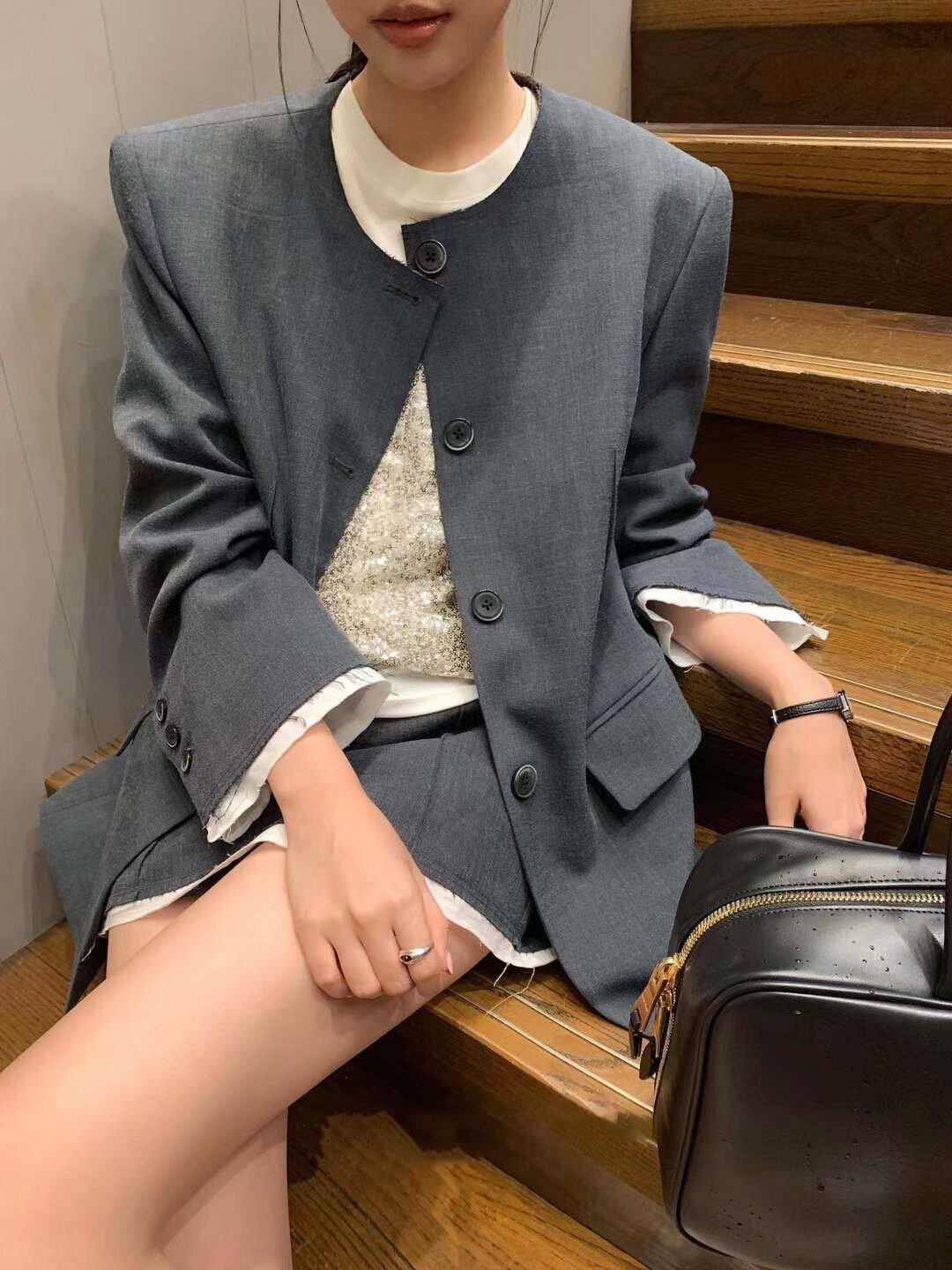 洗練されたシルエットのラウンドロングジャケット 切りっぱなしのデザインと