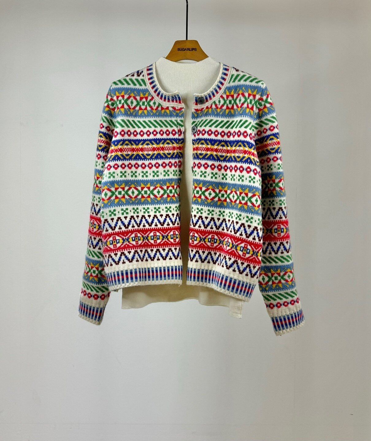 エスニックムードのカラフルな柄カーディガン